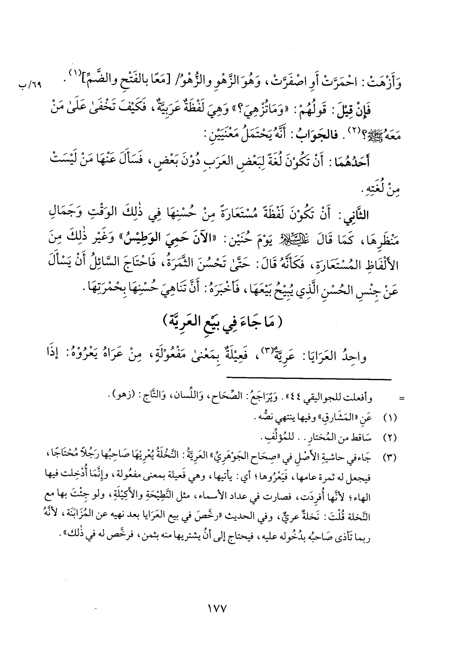 الثاني: أن تكون لفظة مستعارة من حسنها في ذلك الوقت وجمال منظرها، كما قال عليه السلام يوم حنين: "الآن حمي الوطيس" وغير ذلك من الألفاظ المستعارة، فكأنه قال: حتى تحسن الثمرة، فاحتاج السائل أن يسأل عن جنس الحسن الذي يبيح بيعها، فأخبره: أن تناهي حسنها بحمرتها.