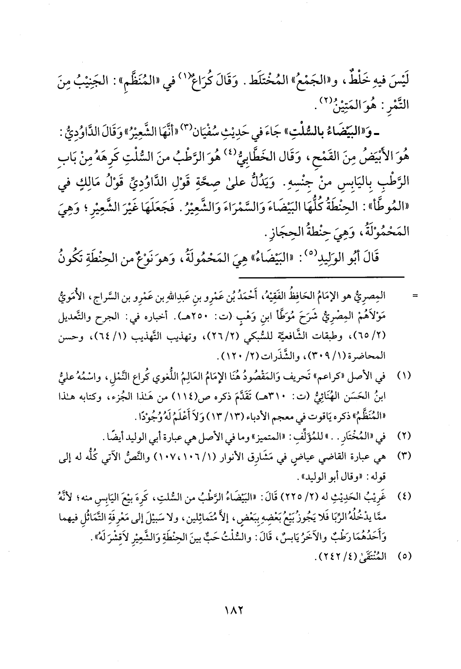 قال أبو الوليد: "البيضاء" هي المحمولة، وهو نوع من الحنطة تكون