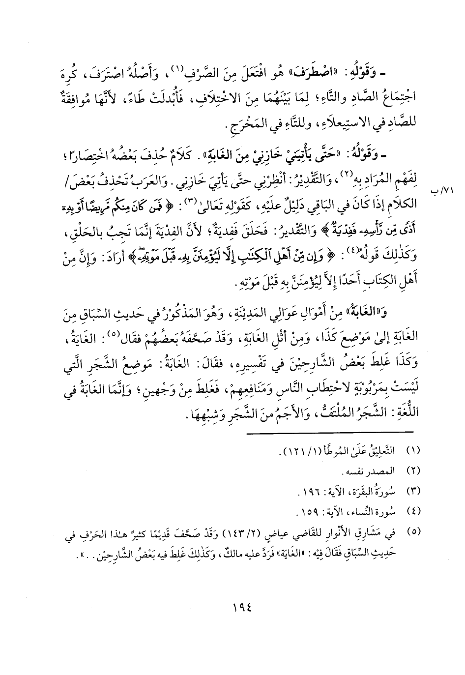 - وقوله: "حتى يأتيني خازني من الغابة". كلام حذف بعضه اختصاراً؛ لفهم المراد به، والتقدير: أنظرني حتى يأتي خازني. والعرب تحذف بعض/ 71/ب الكلام إذا كان في الباقي دليل عليه، كقوله تعالى: {فَمَنْ كَانَ مِنْكُمْ مَرِيضاً أَوْ بِهِ أَذًى مِنْ رَاسِهِ فَفِدْيَةٌ} والتقدير: فحلق ففدية؛ لأن الفدية إنما تجب بالحلق، وكذلك قوله: {وَإِنْ مِنْ أَهْلِ الْكِتَابِ إِلاَّ لَيُؤْمِنَنَّ بِهِ قَبْلَ مَوْتِهِ} أراد: وإن من أهل الكتاب أحداً إلا ليؤمنن به قبل موته.