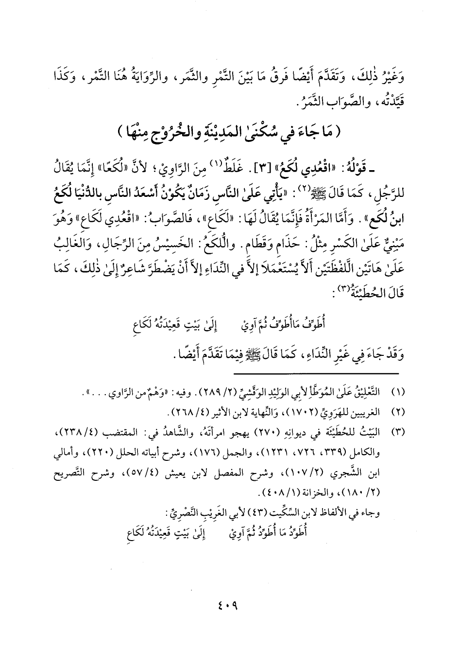 - قوله: "اقعدي لكع" [3]. غلط من الراوي؛ لأن "لكعاً" إنما يقال للرجل، كما قال صلى الله عليه وسلم: "يأتي على الناس زمان يكون أسعد الناس بالدنيا لكع ابن لكع". وأما المرأة فإنما يقال لها: "لكاع"، فالصواب: "اقعدي لكاع" وهو مبني على الكسر مثل: حذام وقطام. واللكع: الخسيس من الرجال، والغالب على هاتين اللفظتين ألا يستعملا إلا في النداء إلا أن يضطر شاعر إلى ذلك، كما قال الحطيئة: