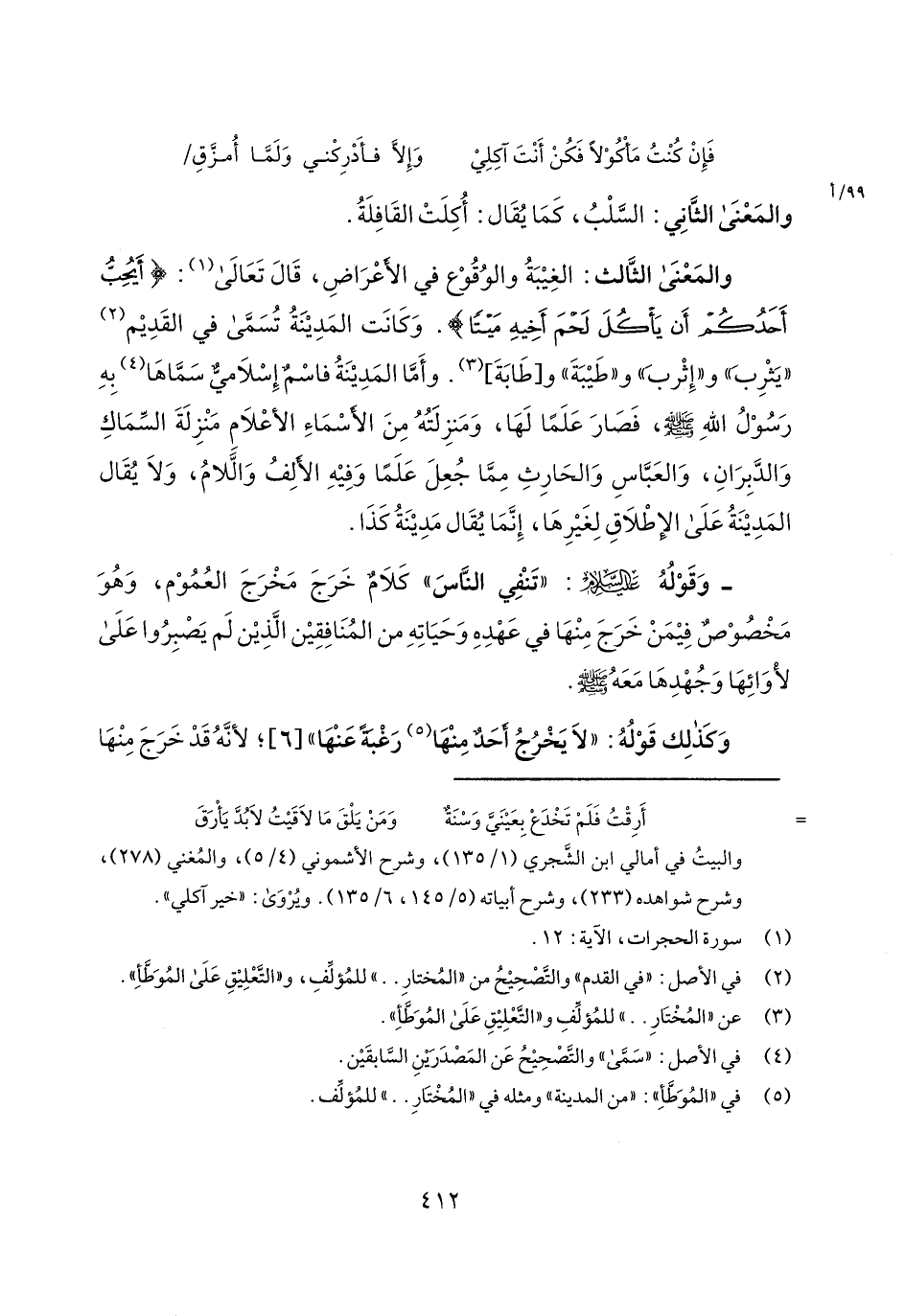 والمعنى الثالث: الغيبة والوقوع في الأعراض، قال تعالى: {أَيُحِبُّ أَحَدُكُمْ أَنْ يَاكُلَ لَحْمَ أَخِيهِ مَيْتاً}. وكانت المدينة تسمى في القديم "يثرب" و"إثرب" و"طيبة" و [طابة]. وأما المدينة فاسم إسلامي سماها به رسول الله صلى الله عليه وسلم، فصار علماً لها، ومنزلته من الأسماء الأعلام منزلة السماك والدبران، والعباس والحارث مما جعل علماً وفيه الألف واللام، ولا يقال المدينة على الإطلاق لغيرها، إنما يقال مدينة كذا.