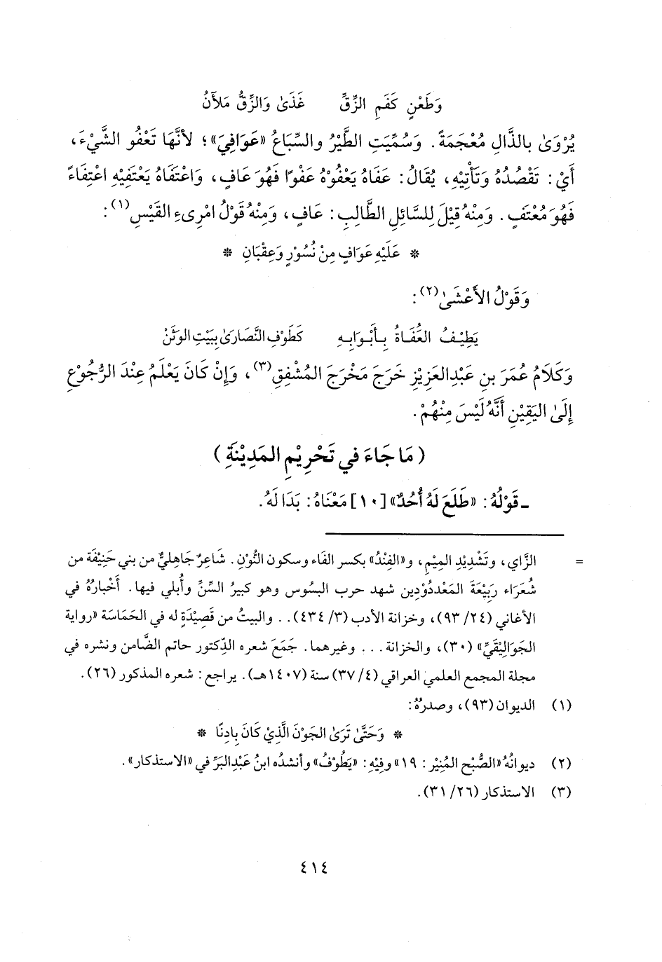يروى بالذال معجمة. وسميت الطير والسباع "عوافي"؛ لأنها تعفو الشيء، أي: تقصده وتأتيه، يقال: عفاه يعفوه عفواً فهو عاف، واعتفاه يعتفيه اعتفاءً فهو معتف. ومنه قيل للسائل الطالب: عاف، ومنه قول امرئ القيس: