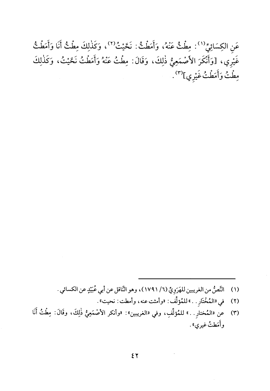 عن الكسائي: مطت عنه، وأمطت: نحيت، وكذلك مطت أنا وأمطت غيري، [وأنكر الأصمعي ذلك، وقال: مطت عنه وأمطت نحيت، وكذلك مطت وأمطت غيري].