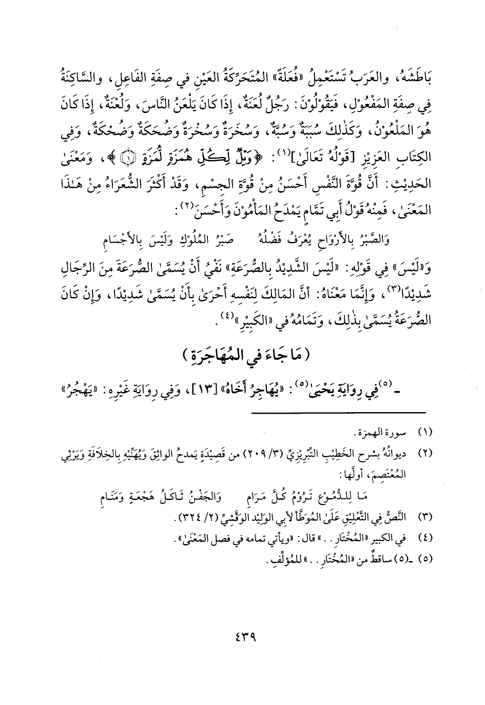 - في رواية يحيى: "يهاجر أخاه" [13]، وفي رواية غيره: "يهجر"