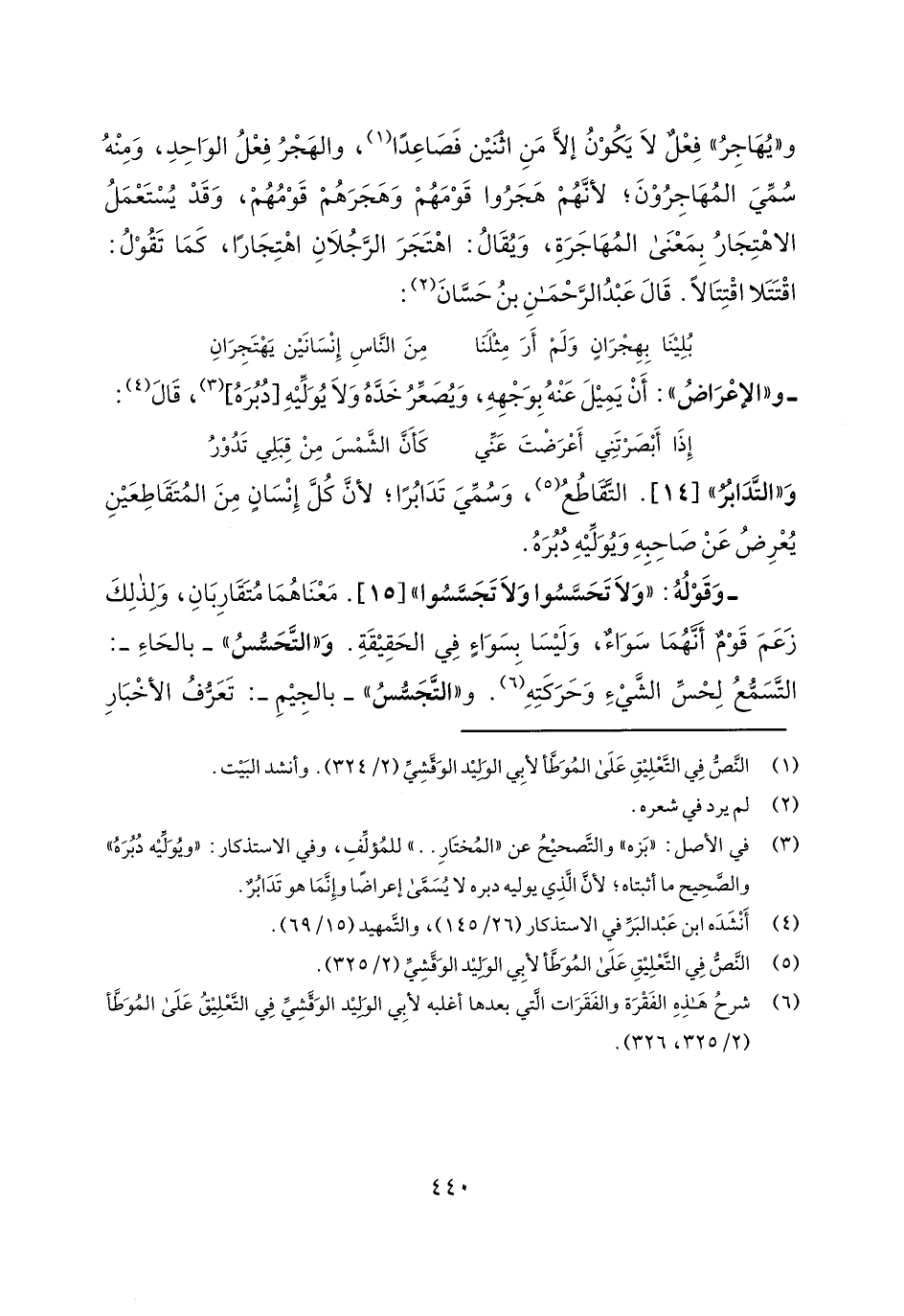 و"التدابر" [14]. التقاطع، وسمي تدابراً؛ لأن كل إنسان من المتقاطعين يعرض عن صاحبه ويوليه دبره.