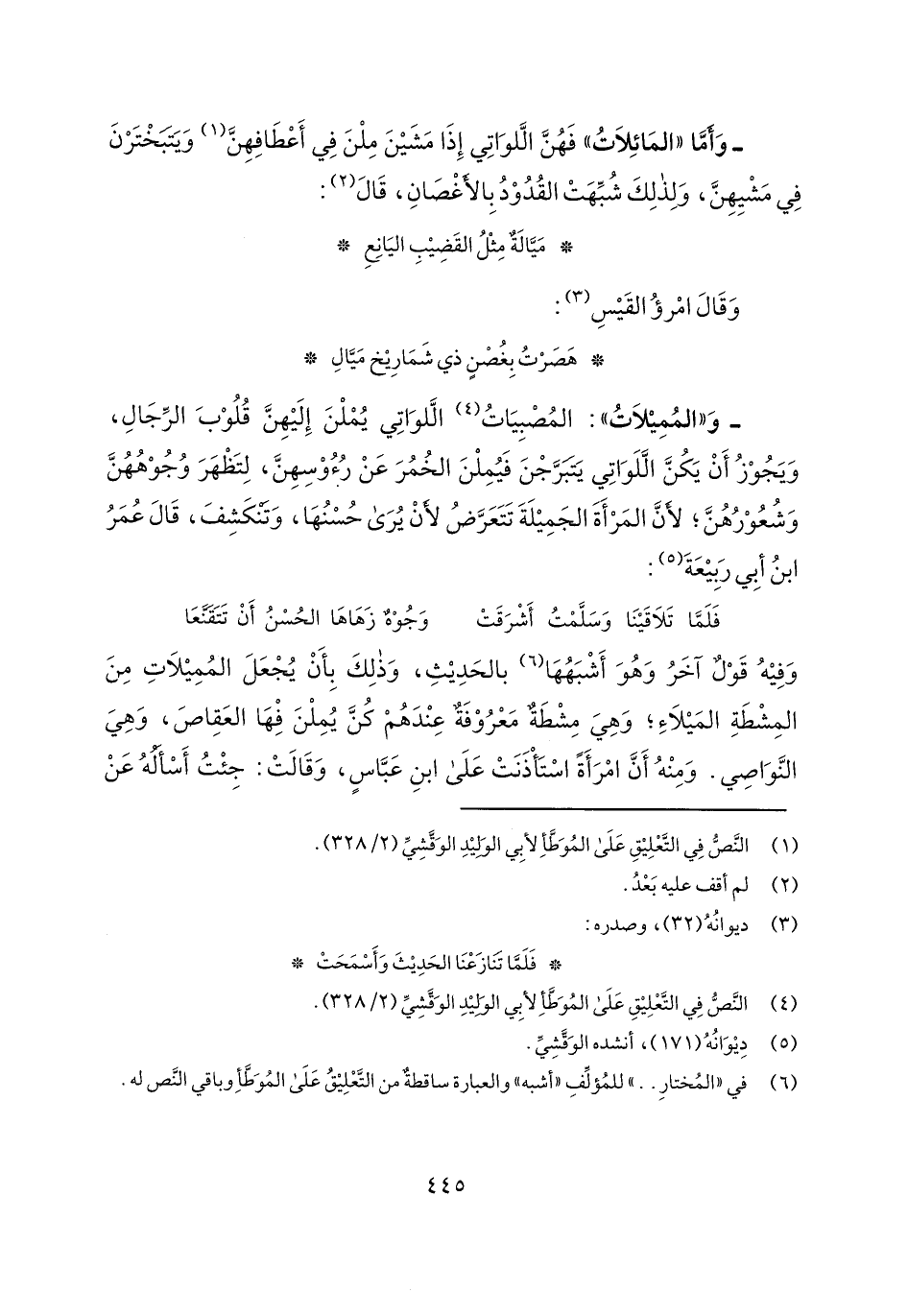- وأما "المائلات" فهن اللواتي إذا مشين ملن في أعطافهن ويتبخترن في مشيهن، ولذلك شبهت القدود بالأغصان، قال: