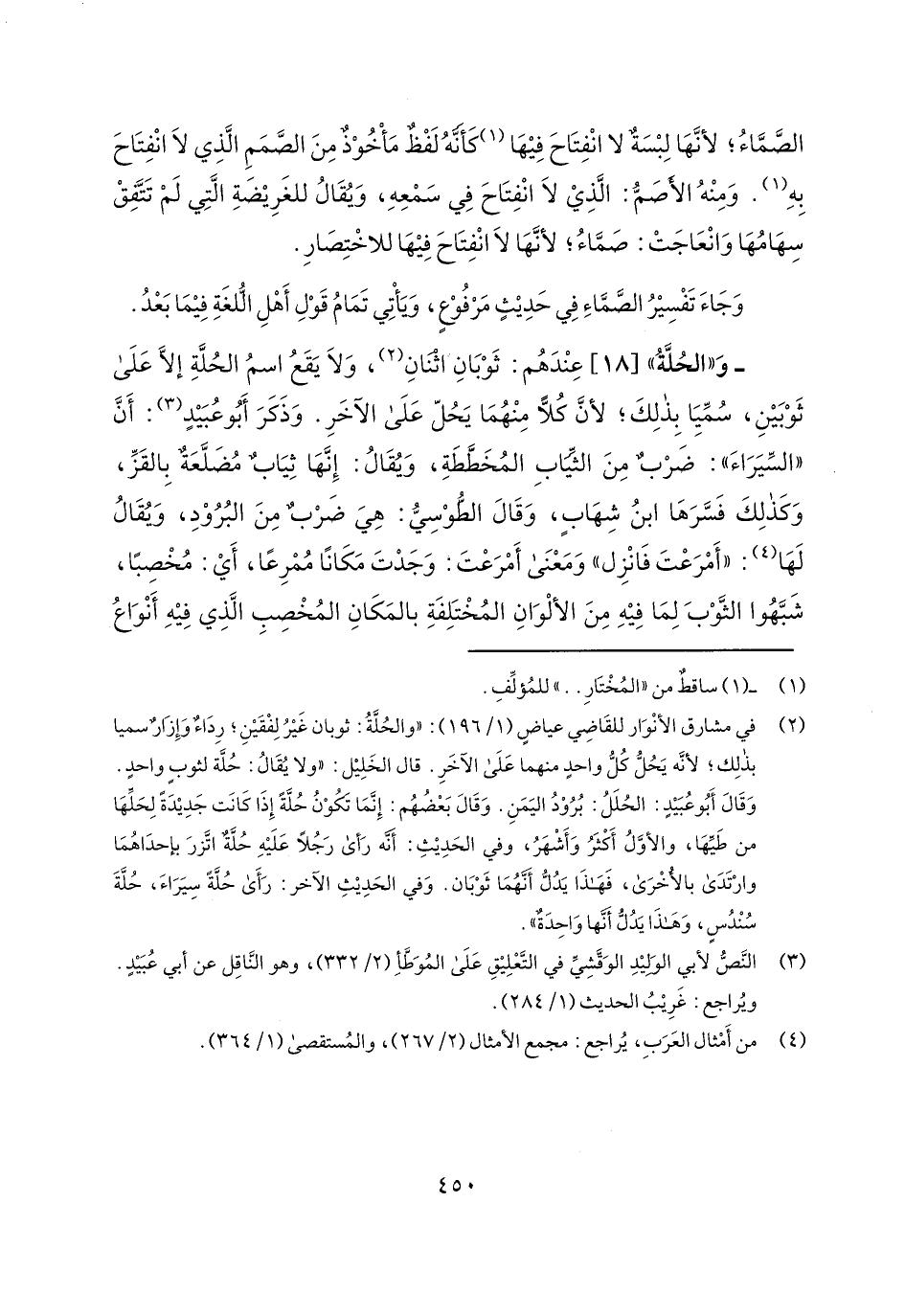 وجاء تفسير الصماء في حديث مرفوع، ويأتي تمام قول أهل اللغة فيما بعد.