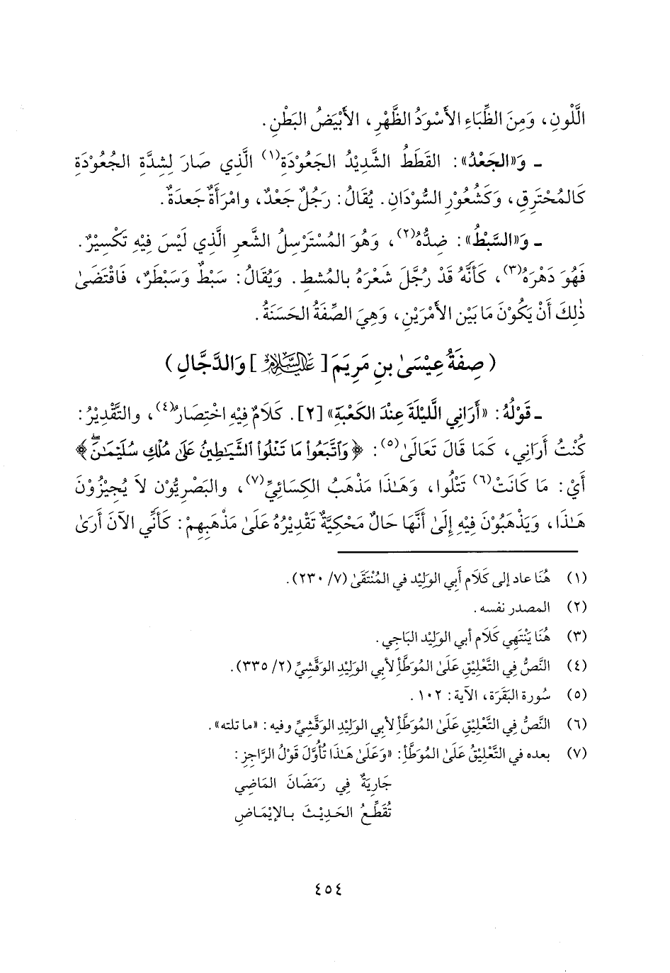 - و"السبط": ضده، وهو المسترسل الشعر الذي ليس فيه تكسير. فهو دهره، كأنه قد رجل شعره بالمشط. ويقال: سبط وسبطر، فاقتضى ذلك أن يكون ما بين الأمرين، وهي الصفة الحسنة.
