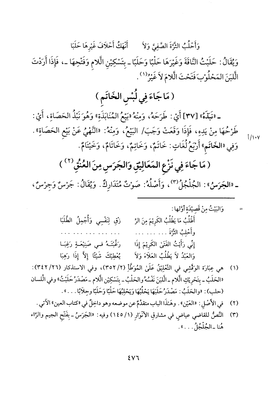 - "نبذه" [37] أي: طرحه، ومنه "بيع المنابذة" وهو نبذ الحصاة، أي: طرحها من يده، فإذا وقعت وجب/ 107/أالبيع، ومنه: "النهي عن بيع الحصاة". وفي "الخاتم" أربع لغات: خاتم، وخاتم، وخاتام، وخيتام.