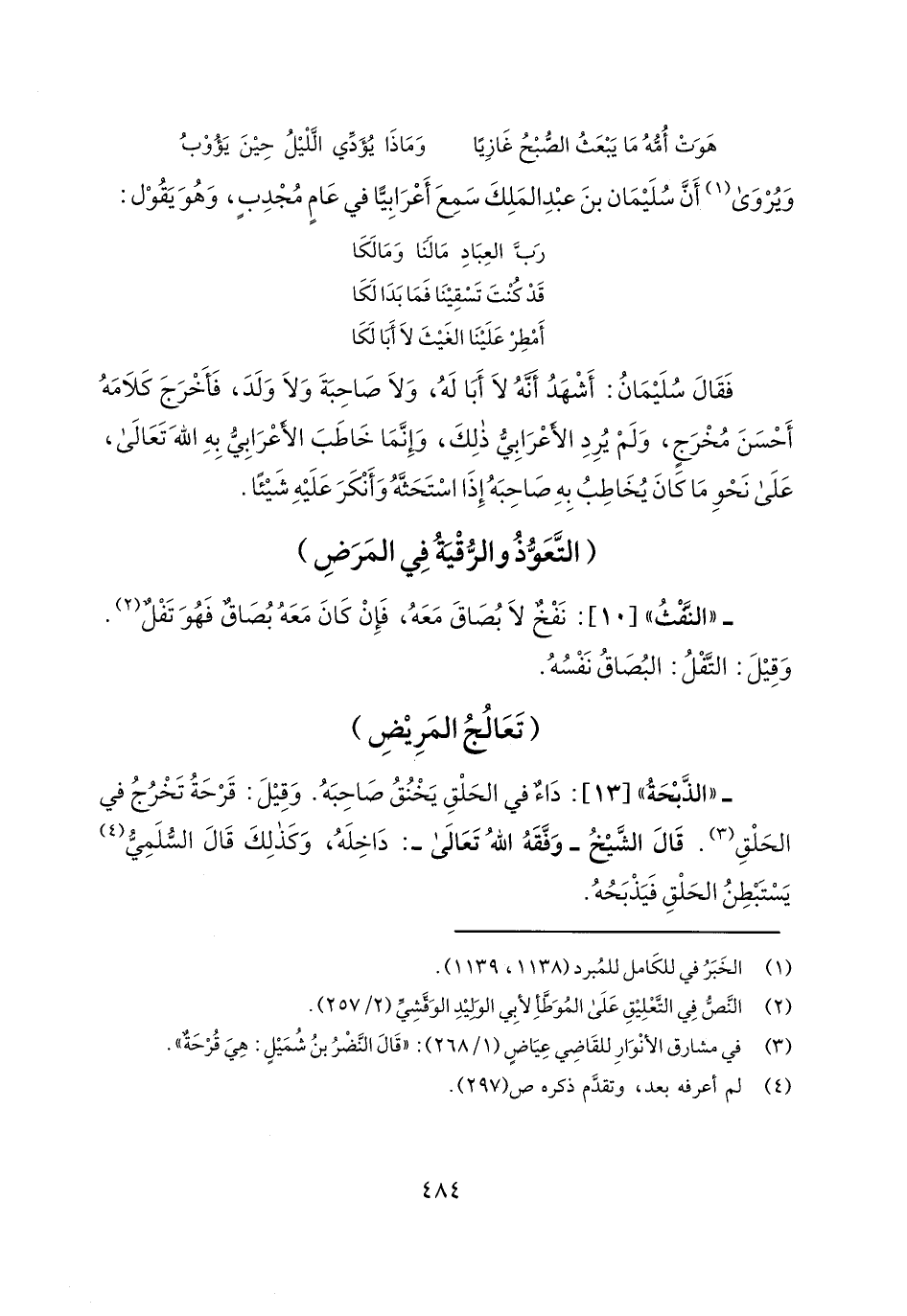 فقال سليمان: أشهد أنه لا أبا له، ولا صاحبة ولا ولد، فأخرج كلامه أحسن مخرج، ولم يرد الأعرابي ذلك، وإنماخاطب الأعرابي به الله تعالى، على نحو ما كان يخاطب به صاحبه إذا استحثه وأنكر عليه شيئاً.