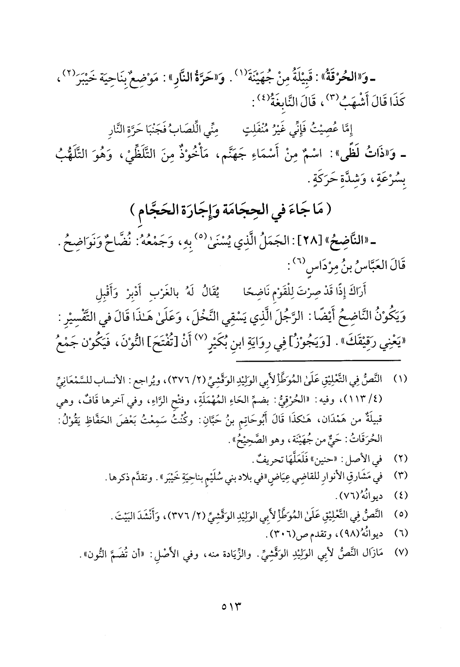 - "الناضح" [28]: الجمل الذي يسنى به، وجمعه: نضاح ونواضح. قال العباس بن مرداس: