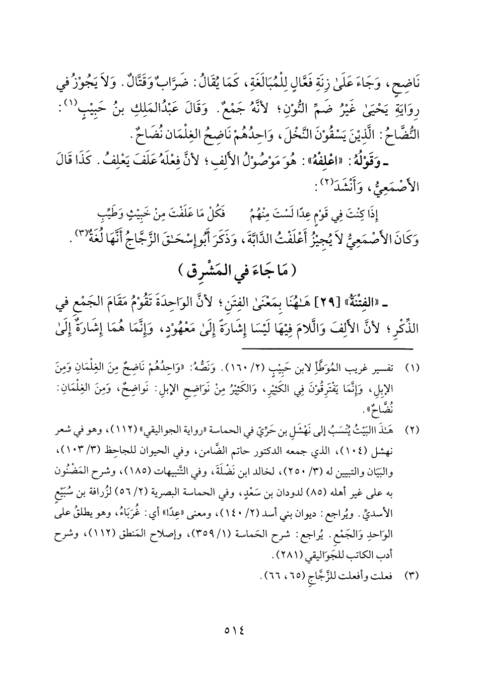 - "الفتنة" [29] ههنا بمعنى الفتن؛ لأن الواحدة تقوم مقام الجمع في الذكر؛ لأن الألف واللام فيها ليست إشارة إلى معهود، وإنما هما إشارة إلى