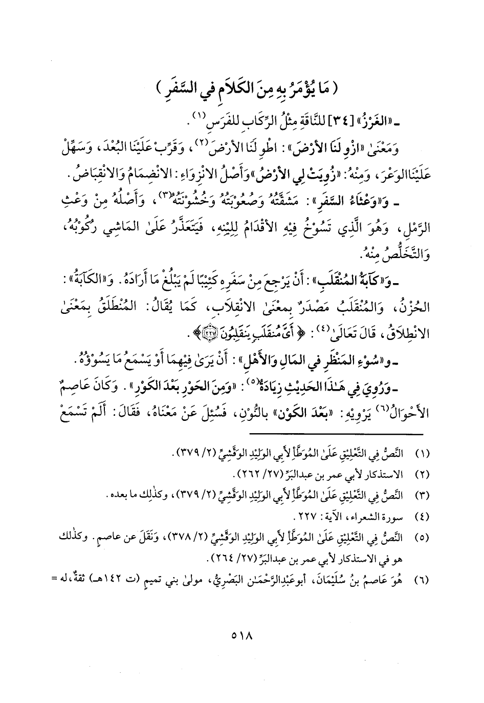 - وروي في هذا الحديث زيادة: "ومن الحور بعد الكور". وكان عاصم الأحوال يرويه: "بعد الكون" بالنون، فسئل عن معناه، فقال: ألم تسمع
