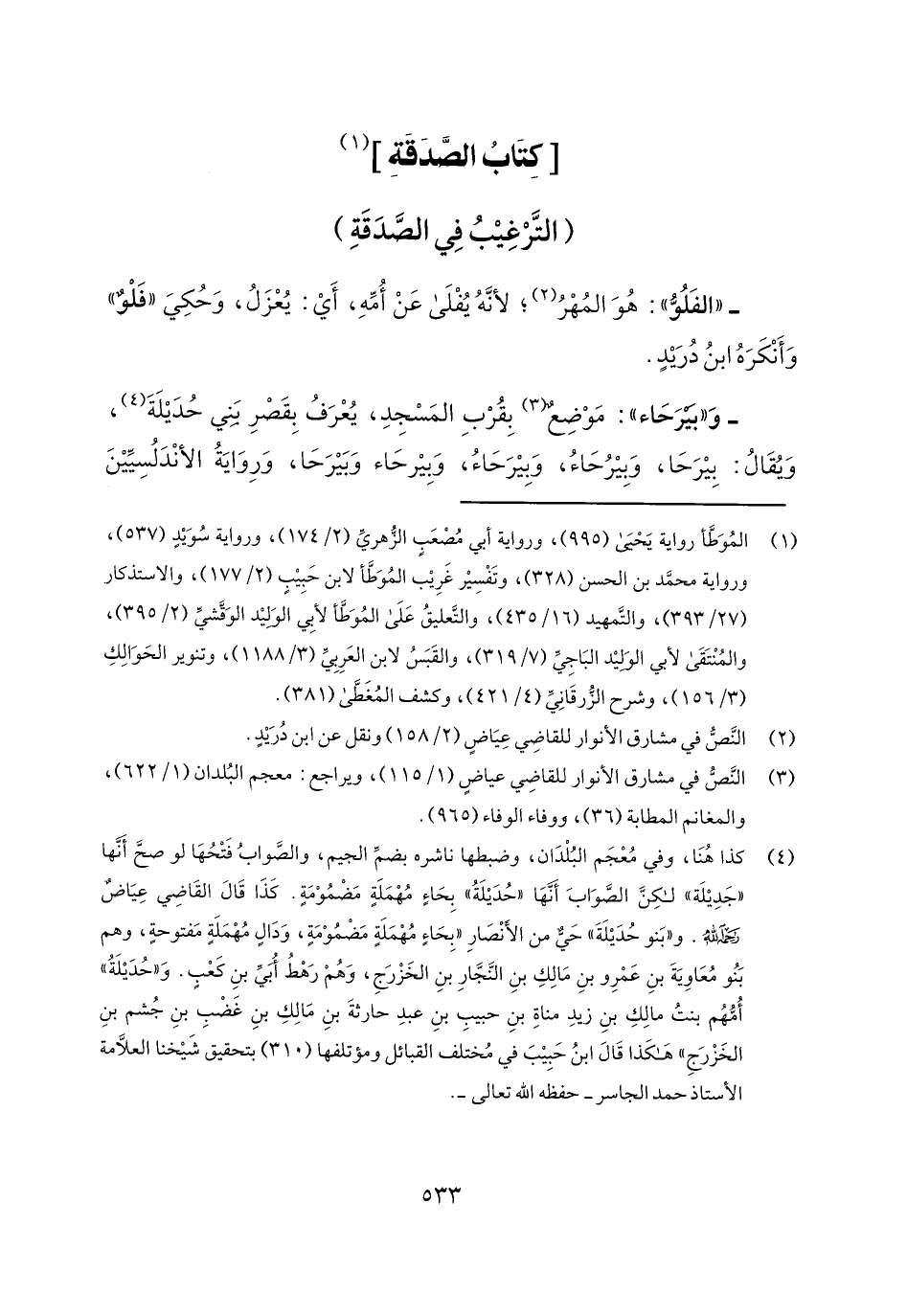 - و"بيرحاء": موضع بقرب المسجد، يعرف بقصر بني حديلة، ويقال: بيرحا، وبيرحاء، وبيرحاء، وبيرحاء وبيرحا، ورواية الأندلسيين