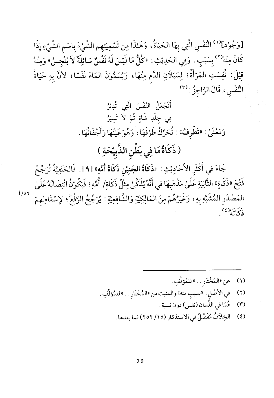 جاء في أكثر الأحاديث: "ذكاة الجنين ذكاة أمه" [9]. فالحنفية ترجح فتح "ذكاة" الثانية على مذهبها في أنه يذكى مثل ذكاة 56/أ/ أمه؛ فيكون انتصابه على المصدر المشبه به، وغيرهم من المالكية والشافعية: يرجح الرفع؛ لإسقاطهم ذكاته.