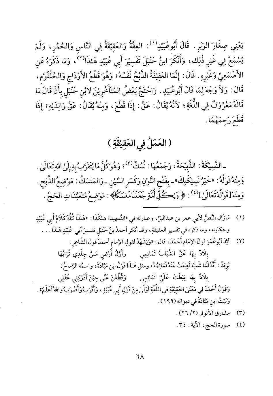 - النسيكة: الذبيحة، وجمعها: نسك؛ وهو كل ما يتقرب به إلى الله تعالى. ومنه قوله: "خير نسيكتك"- بفتح النون وكسر السين- والمنسك: موضع الذبح ومنه [قوله تعالى]: {وَلِكُلِّ أُمَّةٍ جَعَلْنَا مَنْسَكاً}: موضع متعبدات الحج.