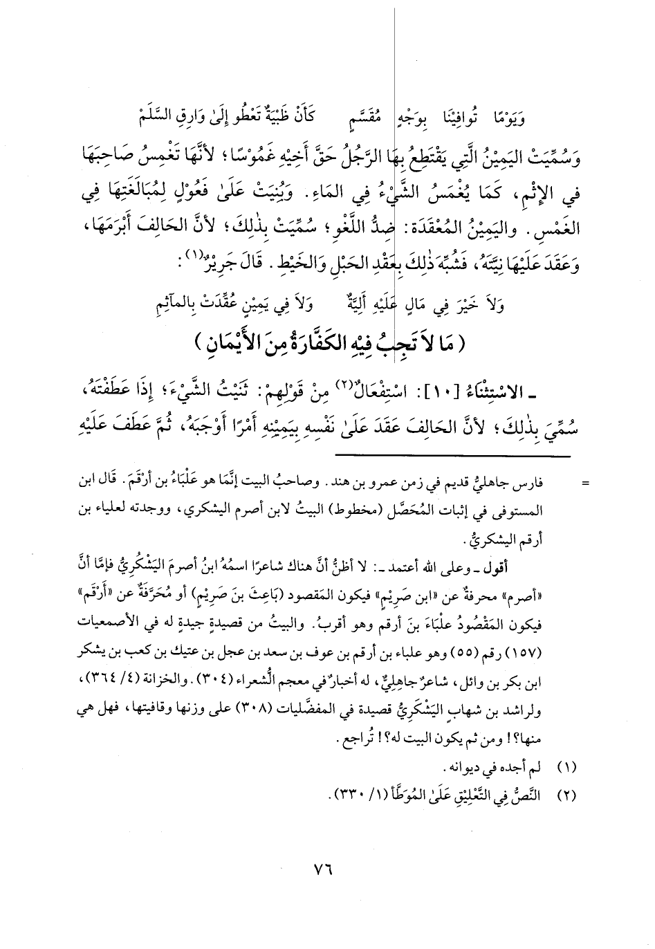 - الاستثناء [10]: استفعال من قولهم: ثنيت الشيء؛ إذا عطفته، سمي بذلك؛ لأن الحالف عقد على نفسه بيمينه أمراً أوجبه، ثم عطف عليه