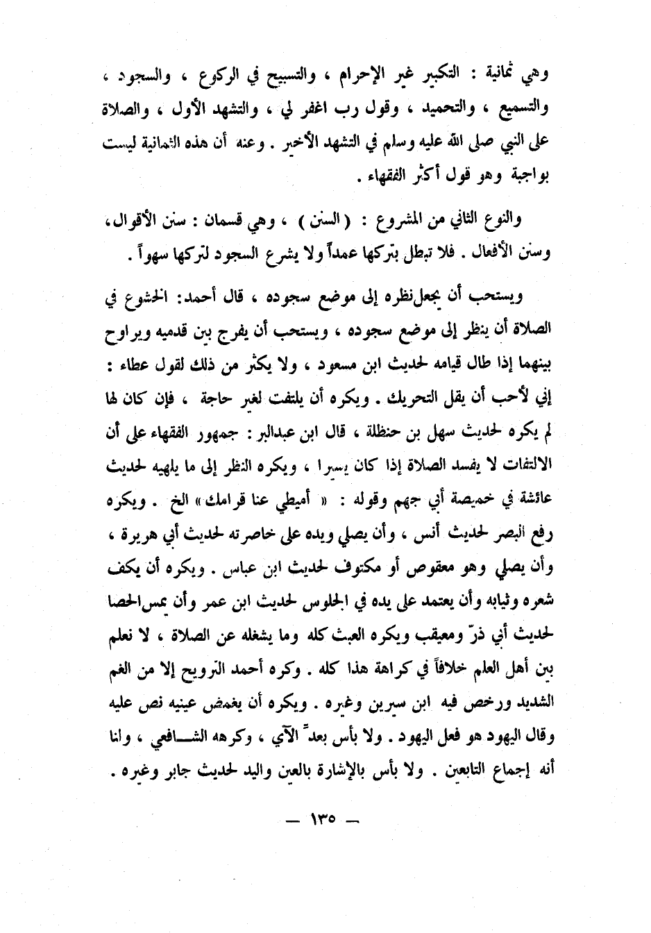و"يكره أن يكف شعره وثيابه، وأن يعتمد على يده في الجلوس"، لحديث ابن عمر، و"أن يمس الحصى"، لحديث أبي ذرّ ومعيقب. ويكره العبث كله وما يشغله عن الصلاة، لا نعلم بين أهل العلم خلافاً في كراهة هذا كله.