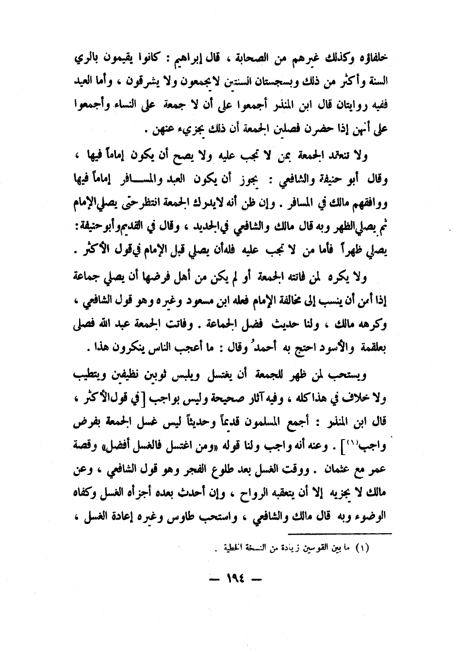 ويستحب لمن ظهر للجمعة أن يغتسل ويلبس ثوبين نظيفين ويتطيب، ولا خلاف في هذا كله؛ وفيه آثار صحيحة، وليس بواجب [في قول الأكثر. قال ابن المنذر: أجمع المسلمون قديماً وحديثاً: ليس غسل الجمعة بفرض واجب 1] . وعنه: أنه واجب. ولنا: قوله: "ومن اغتسل فالغسل أفضل"، 2 وقصة عمر عن عثمان.