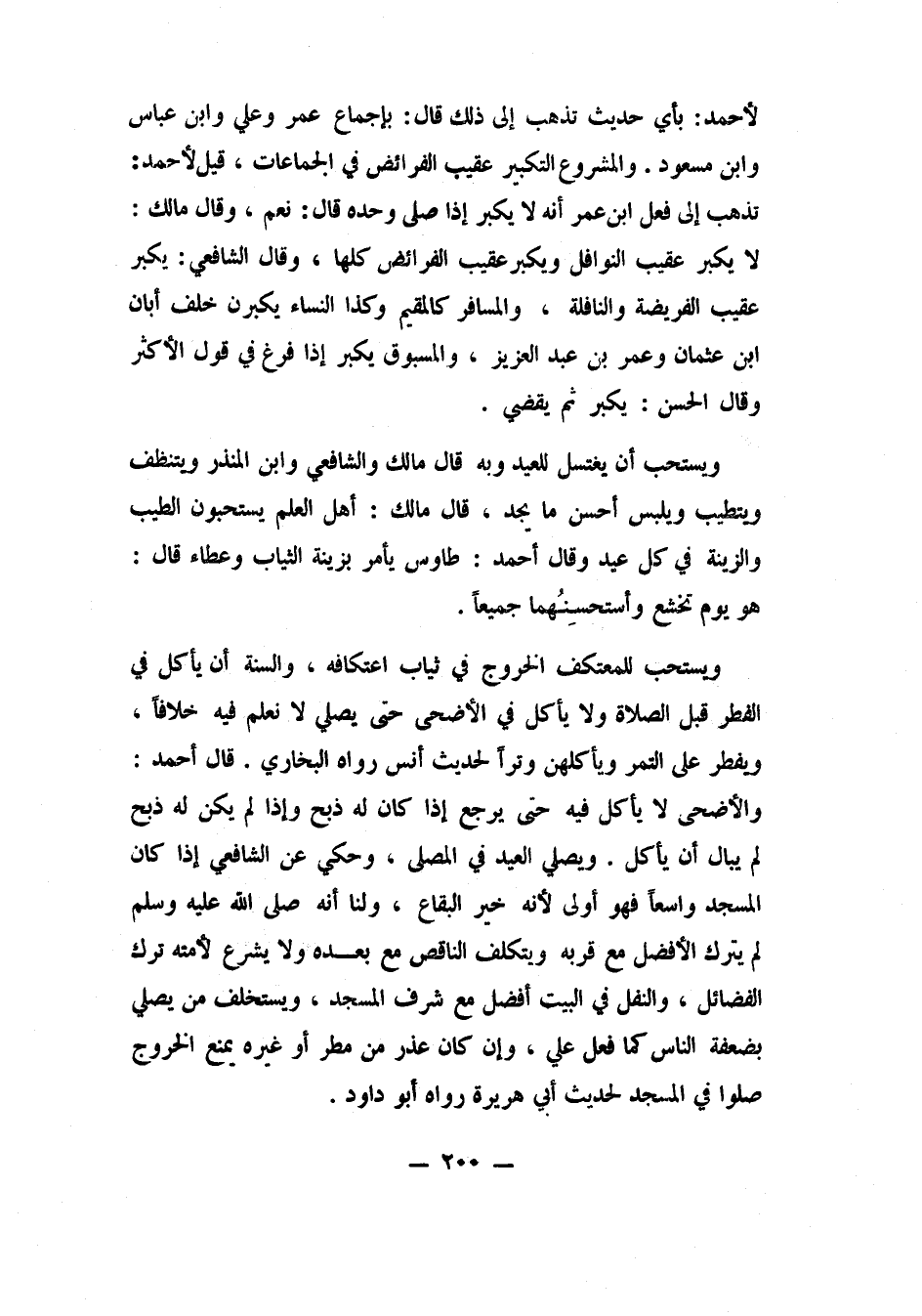 لأحمد: بأي حديث تذهب إلى ذلك؟ قال: بإجماع عمر وعلي وابن عباس وابن مسعود، والمشروع التكبير عقيب الفرائض في الجماعات. قيل لأحمد: تذهب إلى فعل ابن عمر "أنه لا يكبر إذا صلى وحده"؟ قال: نعم. وقال مالك: لا يكبر عقيب النوافل، ويكبر عقيب الفرائض كلها. وقال الشافعي: يكبر عقيب الفريضة والنافلة، والمسافر كالمقيم، وكذا النساء يكبرن خلف أبان بن عثمان وعمر بن عبد العزيز. والمسبوق يكبر إذا فرغ، في قول الأكثر، وقال الحسن: يكبر ثم يقضي.