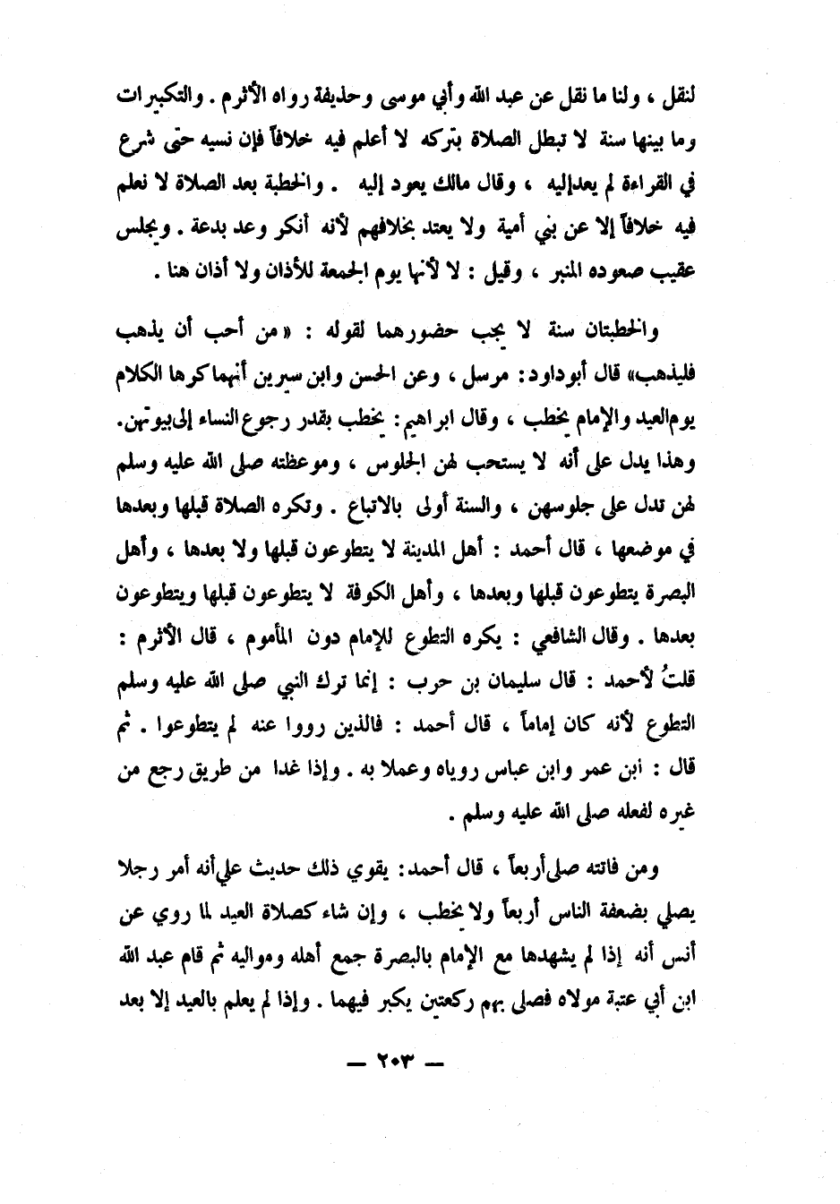 والخطبتان سنة، لا يجب حضورهما، لقوله: "من أحب أن يذهب، فليذهبْ". 1 قال أبو داود: مرسل. وعن الحسن وابن سيرين أنهما كرها الكلام يوم العيد والإمام يخطب. وقال إبراهيم: يخطب بقدر رجوع النساء إلى بيوتهن. وهذا يدل على أنه لا يستحب لهن الجلوس، وموعظته صلى الله عليه وسلم لهن تدل على جلوسهن؛ والسنة أولى بالاتباع. وتكره الصلاة قبلها وبعدها في موضعها، قال أحمد: أهل المدينة لا يتطوعون قبلها ولا بعدها. وأهل البصرة يتطوعون قبلها وبعدها. وأهل الكوفة لا يتطوعون قبلها ويتطوعون بعدها.