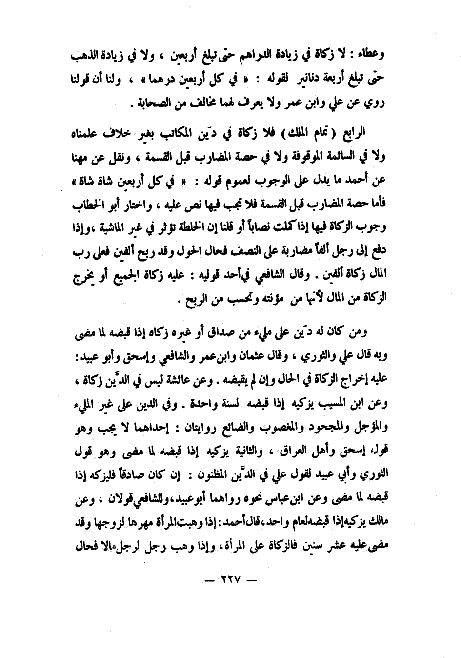 و"من كان له دَين على مليء من صداق أو غيره، زكاه إذا قبضه لما مضى"، وبه قال علي والثوري. وقال عثمان وابن عمر والشافعي وإسحاق وأبو عبيد: "عليه إخراج الزكاة في الحال وإن لم يقبضه". وعن عائشة: "ليس في الدَّين زكاة". وعن ابن المسيب: يزكيه إذا قبضه لسنة واحدة.