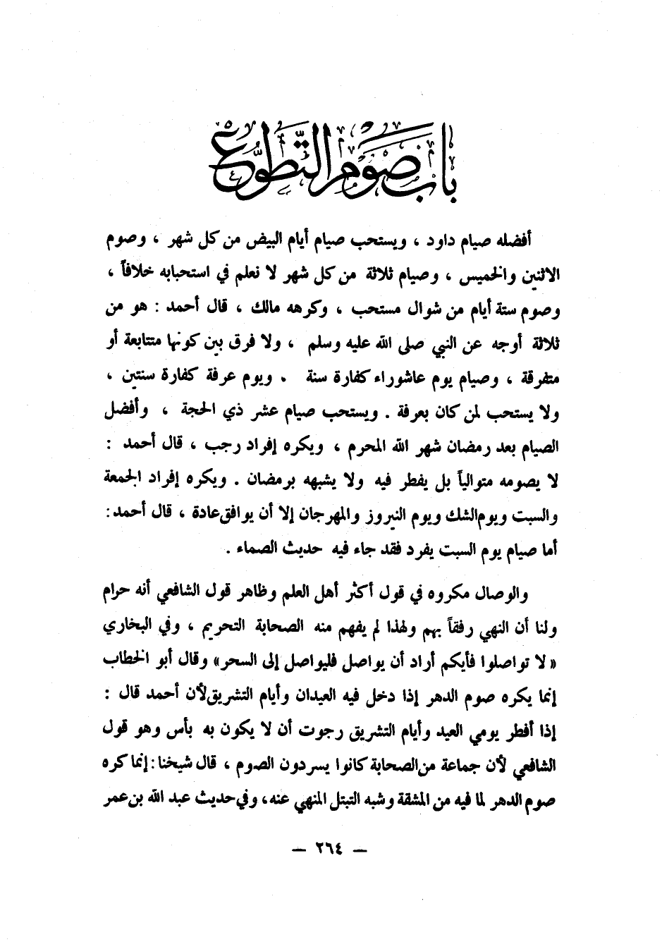 ويستحب صيام عشر ذي الحجة. وأفضل الصيام بعد رمضان: شهر الله المحرم. ويكره إفراد رجب، قال أحمد: لا يصومه متوالياً بل يفطر فيه، ولا يشبهه برمضان.