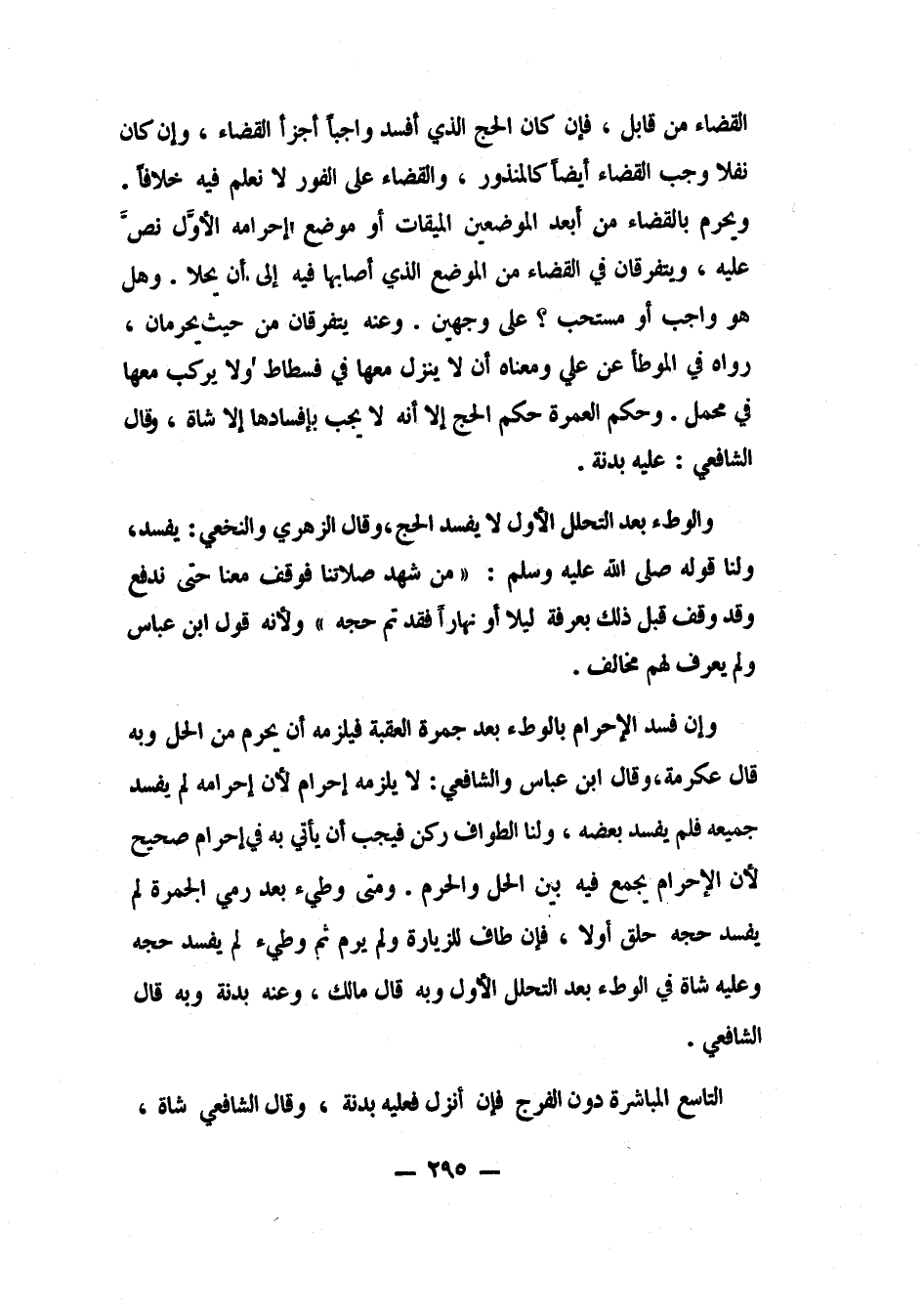 والوطء بعد التحلل الأول لا يفسد الحج، وقال الزهري والنخعي: يفسد. ولنا: قوله صلى الله عليه وسلم: "من شهد صلاتنا فوقف معنا حتى ندفع، وقد وقف قبل ذلك بعرفة ليلاً أو نهاراً، فقد تم حجّه"، 1 ولأنه قول ابن عباس، ولم يعرف لهم مخالف.