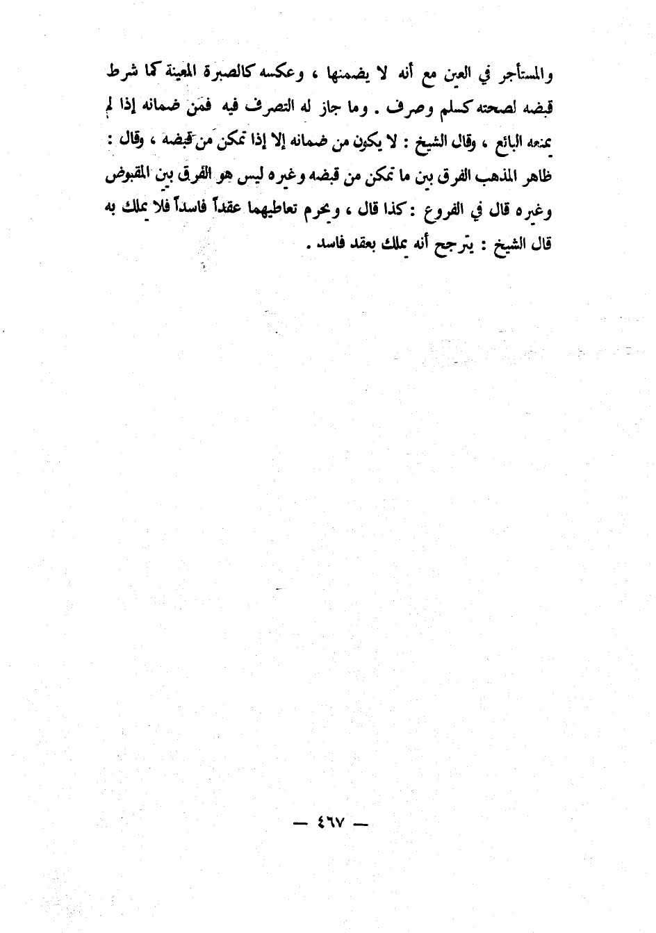 والمستأجر في العين، مع أنه لا يضمنها. وعكسه كالصبرة المعينة، كما شرط قبضه لصحته، كسلم وصرف.