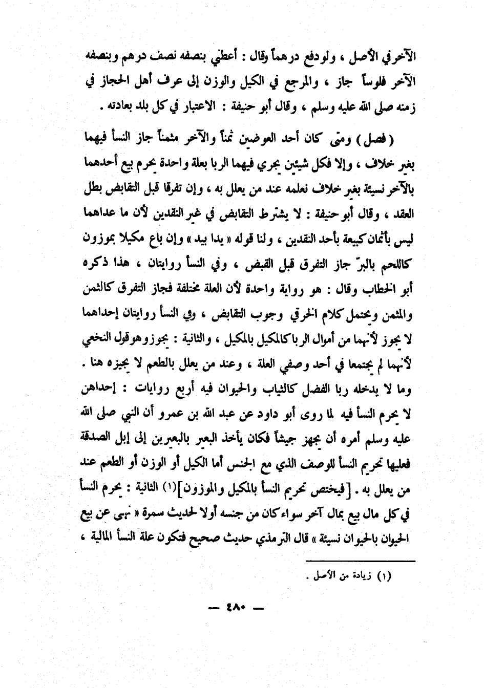 الثانية: يحرم النسأ في كل مال بيع بمال آخر، سواء كان من جنسه أو لا، لحديث سمرة: "نهى عن بيع الحيوان بالحيوان نسيئة". 3 قال الترمذي: حديث صحيح، فتكون علة النسإ: المالية.