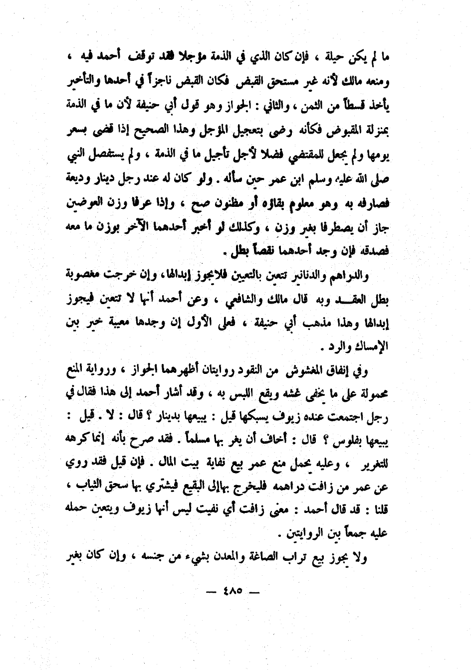 ما لم يكن حيلة. فإن كان الذي في الذمة مؤجلاً، فقد توقف أحمد فيه، ومنعه مالك، لأنه غير مستحق القبض، فكان القبض ناجزاً في أحدها والتأخير يأخذ قسطاً من الثمن.