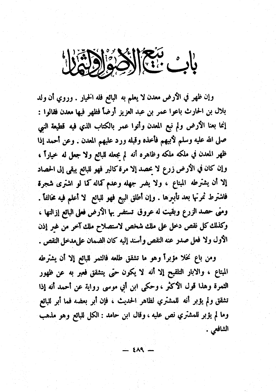 باب بيع الأصو ول الأثمان