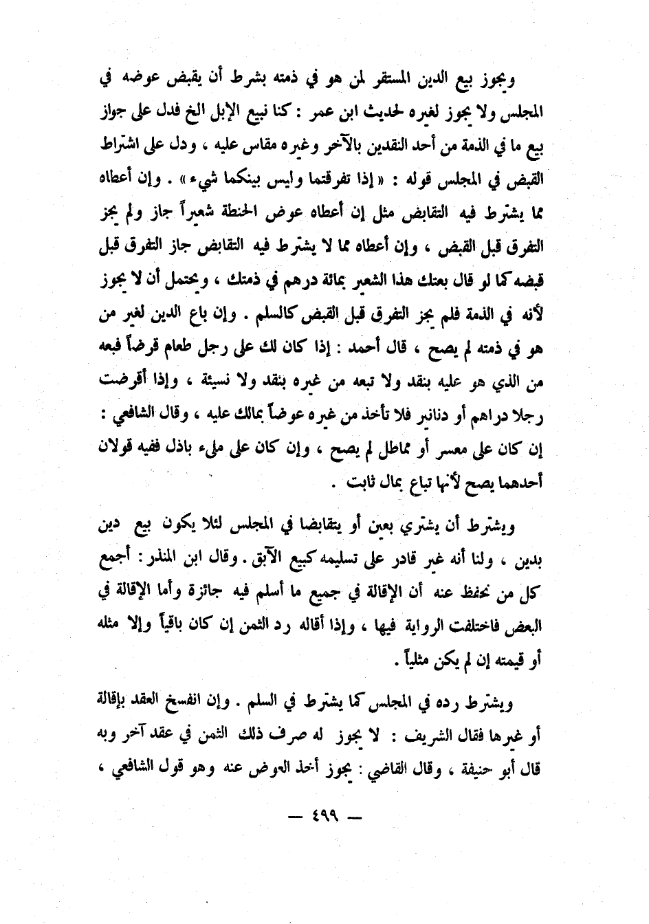 ويشترط أن يشتري بعين أو يتقابضا في المجلس، لئلا يكون بيع ديْن بديْن. ولنا: أنه غير قادر على تسليمه، كبيع الآبق.