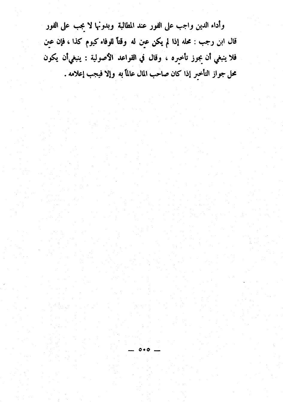 وأداء الديْن واجب على الفور عند المطالبة، وبدونها لا يجب على الفور، قال ابن رجب: محله إذا لم يكن عيّن له وقتاً للوفاء كيوم كذا، فإن عيّن فلا ينبغي أن يجوز تأخيره. وقال في القواعد الأصولية: ينبغي أن يكون محل جواز التأخير إذا كان صاحب المال عالماً به، وإلا فيجب إعلامه