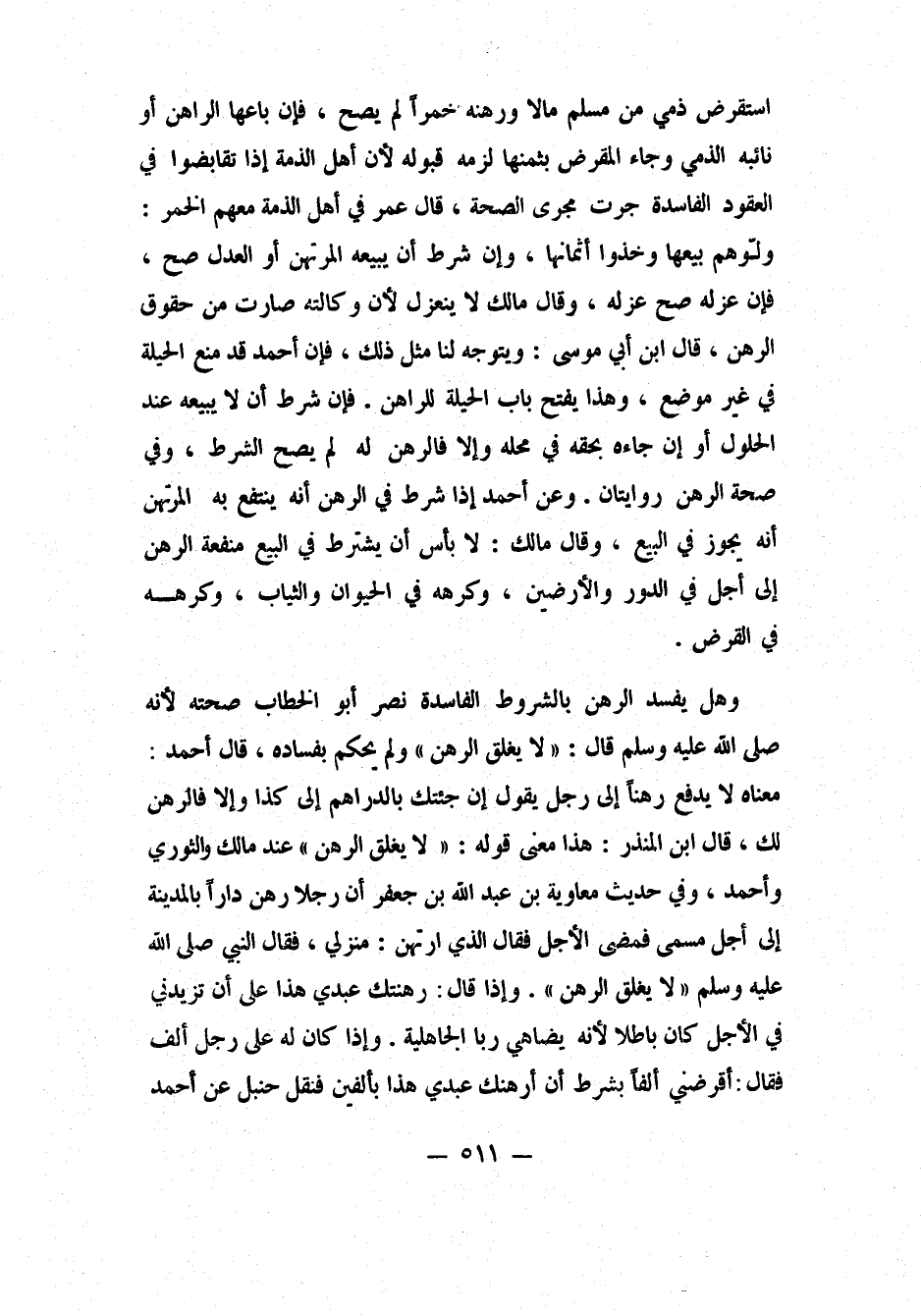 استقرض ذمي من مسلم مالاً ورهنه خمراً، لم يصح. فإن باعها الراهن أو نائبه الذمي وجاء المقرض بثمنها، لزمه قبوله، لأن أهل الذمة إذا تقابضوا في العقود الفاسدة جرت مجرى الصحة. قال عمر في أهل الذمة معهم الخمر: "ولّوهم بيعها، وخذوا أثمانها". وإن شرط أن يبيعه المرتهن أو العدل صح. فإن عزله صح عزله، وقال مالك: لا ينعزل، لأن وكالته صارت من حقوق الرهن. قال ابن أبي موسى: ويتوجه لنا مثل ذلك، فإن أحمد قد منع الحيلة في غير موضع، وهذا يفتح باب الحيلة للراهن. فإن شرط أن لا يبيعه عند الحلول، أو إن جاءه بحقه في محله وإلا فالرهن له، لم يصح الشرط، وفي صحة الرهن روايتان.