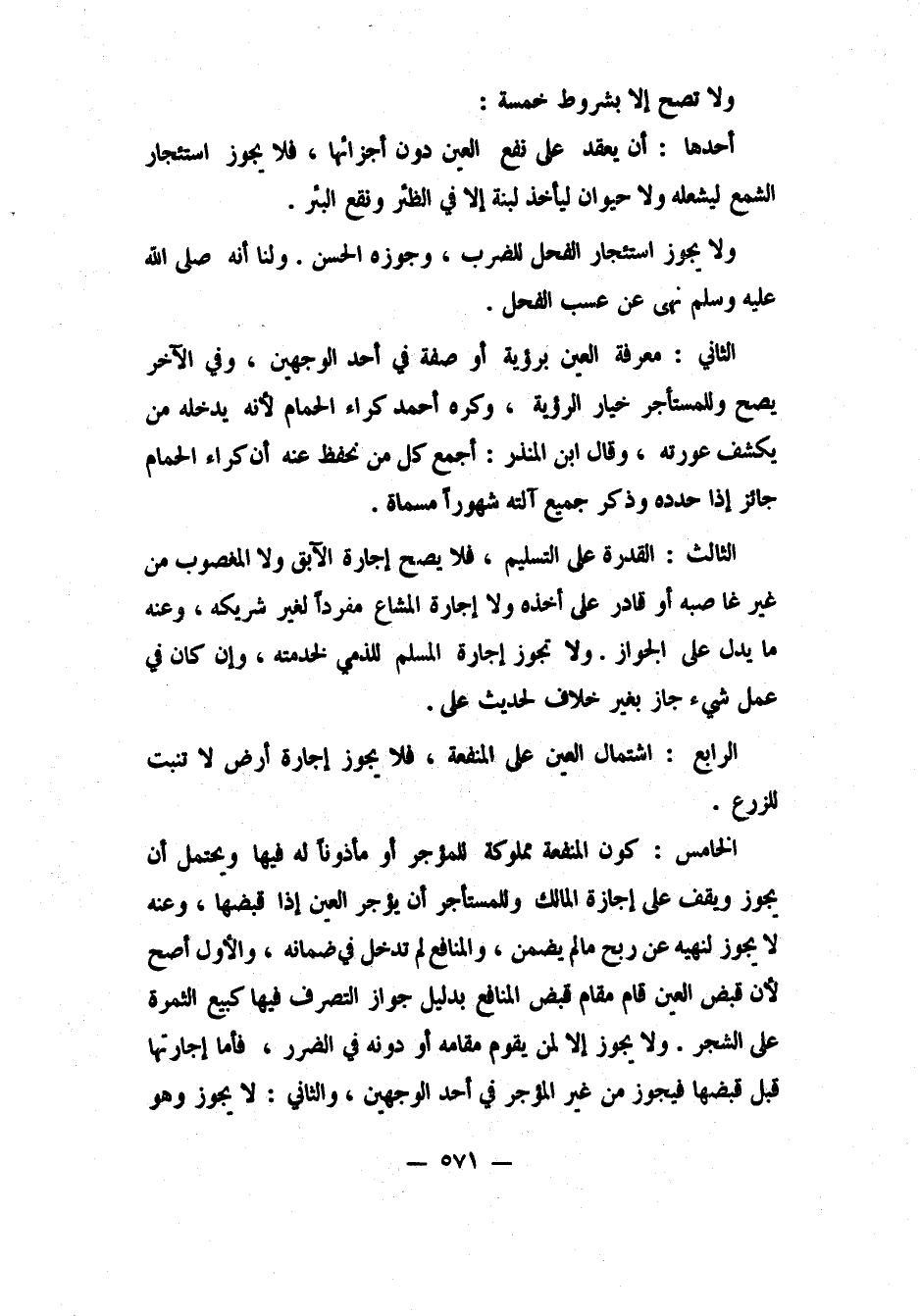 أحدها: أن يعقد على نفع العين دون أجزائها، فلا يجوز استئجار الشمع ليشعله، ولا حيوان ليأخذ لبنه إلا في الظئر ونقع البئر. ولا يجوز استئجار الفحل للضرب، وجوزه الحسن. ولنا: "أنه صلى الله عليه وسلم نهى عن عسب الفحل" 1.