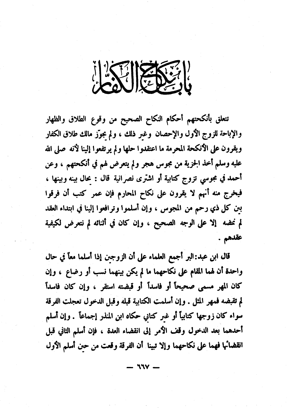 تتعلق بأنكحتهم أحكام النكاج الصحيح، من وقوع الطلاق والظهار والإباحة للزوج الأول والإحصان وغير ذلك. ولم يجوّز مالك طلاق الكفار، ويقرّون على الأنكحة المحرمة ما اعتقدوا حلها ولم يرتفعوا إلينا، "لأنه صلى الله عليه وسلم أخذ الجزية من مجوس هجر، ولم يتعرض لهم في أنكحتهم". وعن أحمد في مجوسي تزوج كتابية أو اشترى نصرانية قال: يحال بينه وبينها، فيخرج منه، أنهم لا يقرون على نكاح المحارم. فـ"إن عمر كتب أن فرّقوا بين كل ذي رحم من المجوس". وإن أسلموا وترافعوا إلينا في ابتداء العقد لم نمضه إلا على الوجه الصحيح، وإن كان في أثنائه لم نتعرض لكيفية عقدهم.