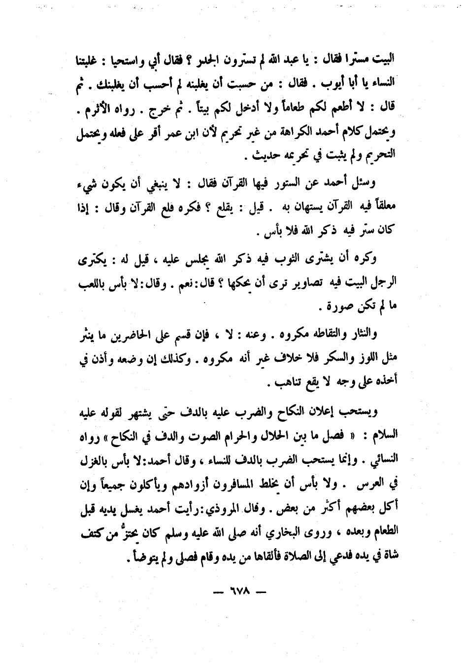 ويحتمل كلام أحمد الكراهة من غير تحريم، "لأن ابن عمر أقر على فعله"، ويحتمل التحريم ولم يثبت في تحريمه حديث.