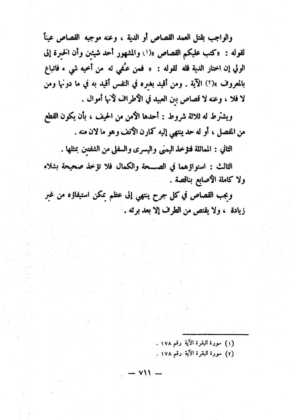ويجب القصاص في كل جرح ينتهي إلى عظم يمكن استيفاؤه من غير زيادة. ولا يقتص من الطرف إلا بعد برئه.