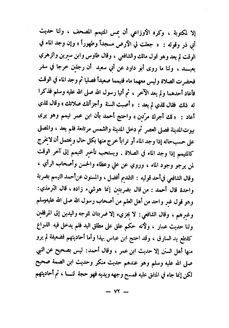 إلا لمكتوبة. وكره الأوزاعي أن يمس المتيمم المصحف. ولنا: حديث أبي ذر وقوله: "جعلت لي الأرض مسجداً وطهوراً". 1 وإن وجد الماء في الوقت، لم يعد، وهو قول مالك والشافعي. وقال طاووس وابن سيرين والزهري: يعيد. ولنا: ما روى أبو داود عن أبي سعيد: "أن رجلين خرجا في سفر فحضرت الصلاة وليس معهما ماء، فتيمما صعيداً فصليا. ثم وجد الماء في الوقت، فأعاد أحدهما ولم يُعد الآخر. ثم أتيا رسول الله صلى الله عليه وسلم فذكرا له ذلك، فقال للذي لم يُعد: أصبت السنة، وأجزأتك صلاتك. وقال للذي أعاد: لك أجرك مرتين" 2.