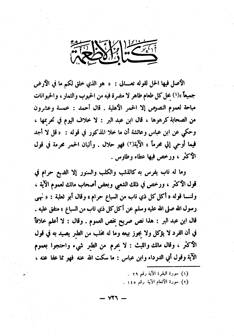 يحل كل طعام طاهر لا مضرة فيه، من الحبوب والثمار. والحيوانات مباحة، لعموم النصوص، إلا الحمر الأهلية. قال أحمد: خمسة وعشرون من الصحابة كرهوها، قال ابن عبد البر: لا خلاف اليوم في تحريمها، وحكي عن ابن عباس وعائشة "أن ما خلا المذكور في قوله: {قُلْ لا أَجِدُ فِي مَا أُوحِيَ إِلَيَّ} الآية، 2 فهو حلال". وألبان الحمر محرمة في قول الأكثر، ورخص فيها عطاء وطاووس.