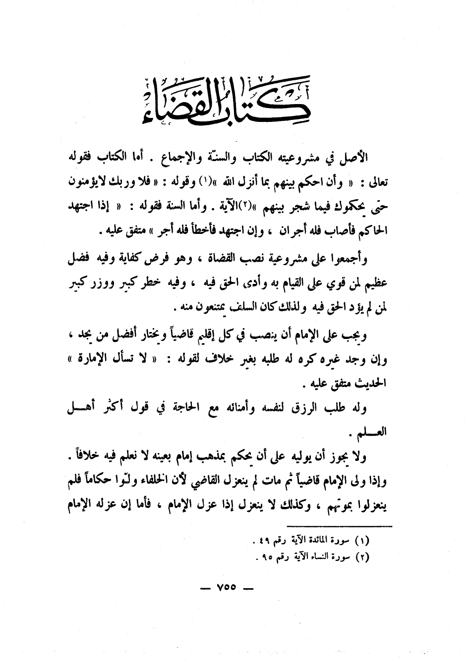 أما الكتاب، فقوله تعالى: {وَأَنِ احْكُمْ بَيْنَهُمْ بِمَا أَنْزَلَ اللَّهُ} ، 1 وقوله: {فَلا وَرَبِّكَ لا يُؤْمِنُونَ حَتَّى يُحَكِّمُوكَ فِيمَا شَجَرَ بَيْنَهُمْ} الآية 2.