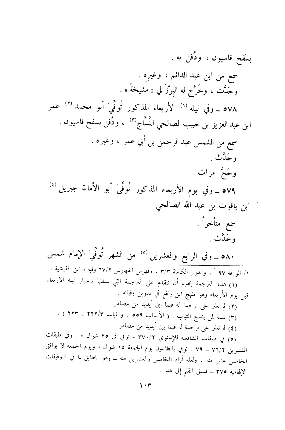 580 - وَفِي الرَّابِع وَالْعِشْرين من الشَّهْر توفّي الإِمَام شمس
