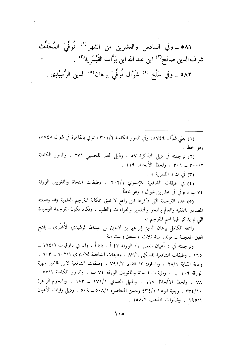 582 - وَفِي سلخ شَوَّال توفّي برهَان الدّين الرَّشِيدِيّ