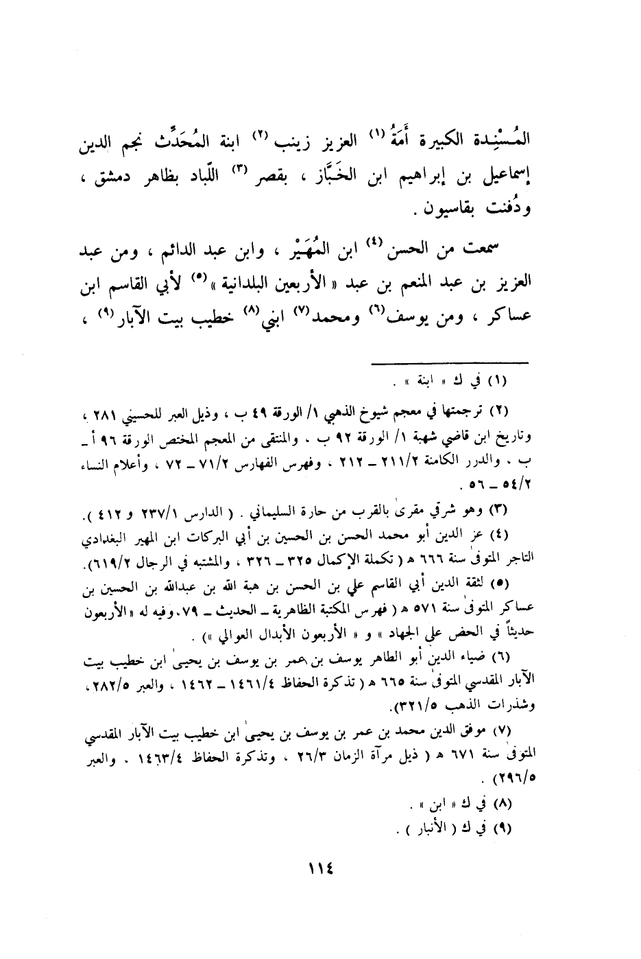 المسندة الْكَبِيرَة أمة الْعَزِيز زَيْنَب ابْنة الْمُحدث نجم الدّين إِسْمَاعِيل بن إِبْرَاهِيم ابْن الخباز بقصر اللباد بِظَاهِر دمشق ودفنت بقاسيون