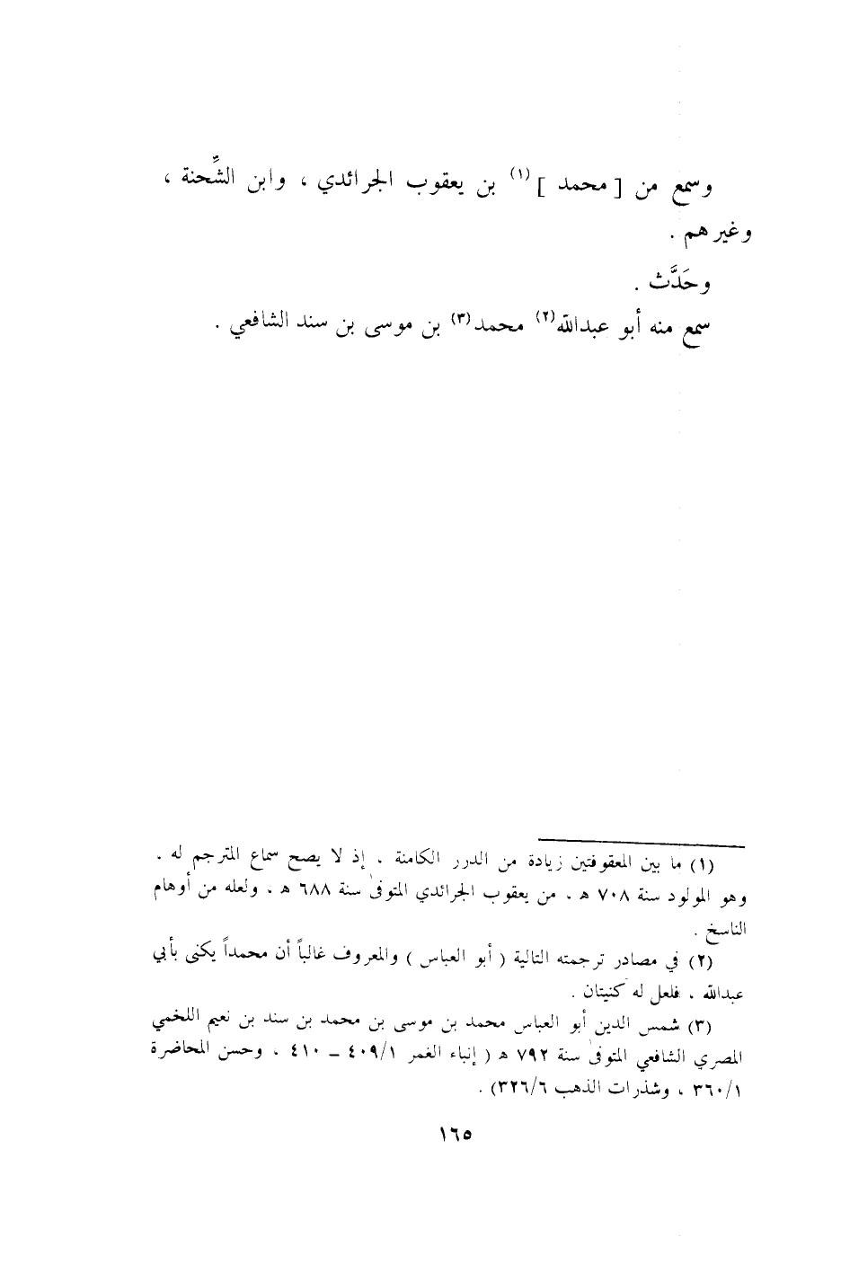 وَحدث 3 سمع مِنْهُ أَبُو عبد الله مُحَمَّد بن مُوسَى بن سَنَد الشَّافِعِي