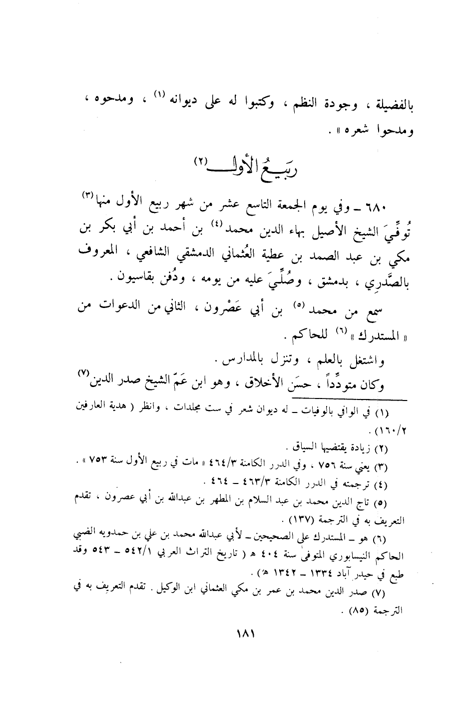 680 - وَفِي يَوْم الْجُمُعَة التَّاسِع عشر من شهر ربيع الأول مِنْهَا توفّي الشَّيْخ الْأَصِيل بهاء الدّين مُحَمَّد بن أَحْمد بن أبي بكر بن مكي بن عبد الصَّمد بن عَطِيَّة العثماني الدِّمَشْقِي الشَّافِعِي الْمَعْرُوف بالصدري بِدِمَشْق وَصلي عَلَيْهِ من يَوْمه وَدفن بقاسيون