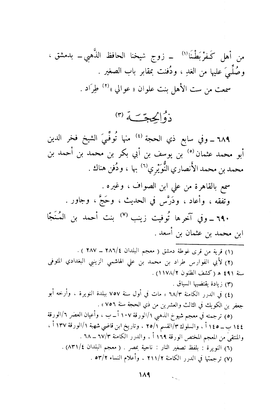 690 - وَفِي آخرهَا توفيت زَيْنَب بنت أَحْمد بن المنجا ابْن مُحَمَّد بن عُثْمَان بن أسعد