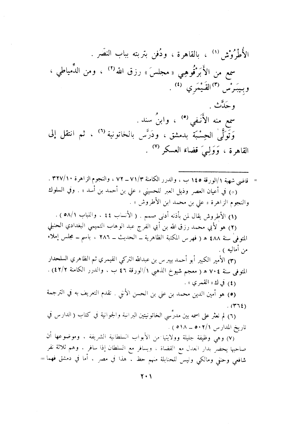 الأطروش بِالْقَاهِرَةِ وَدفن بتربته بِبَاب النَّصْر