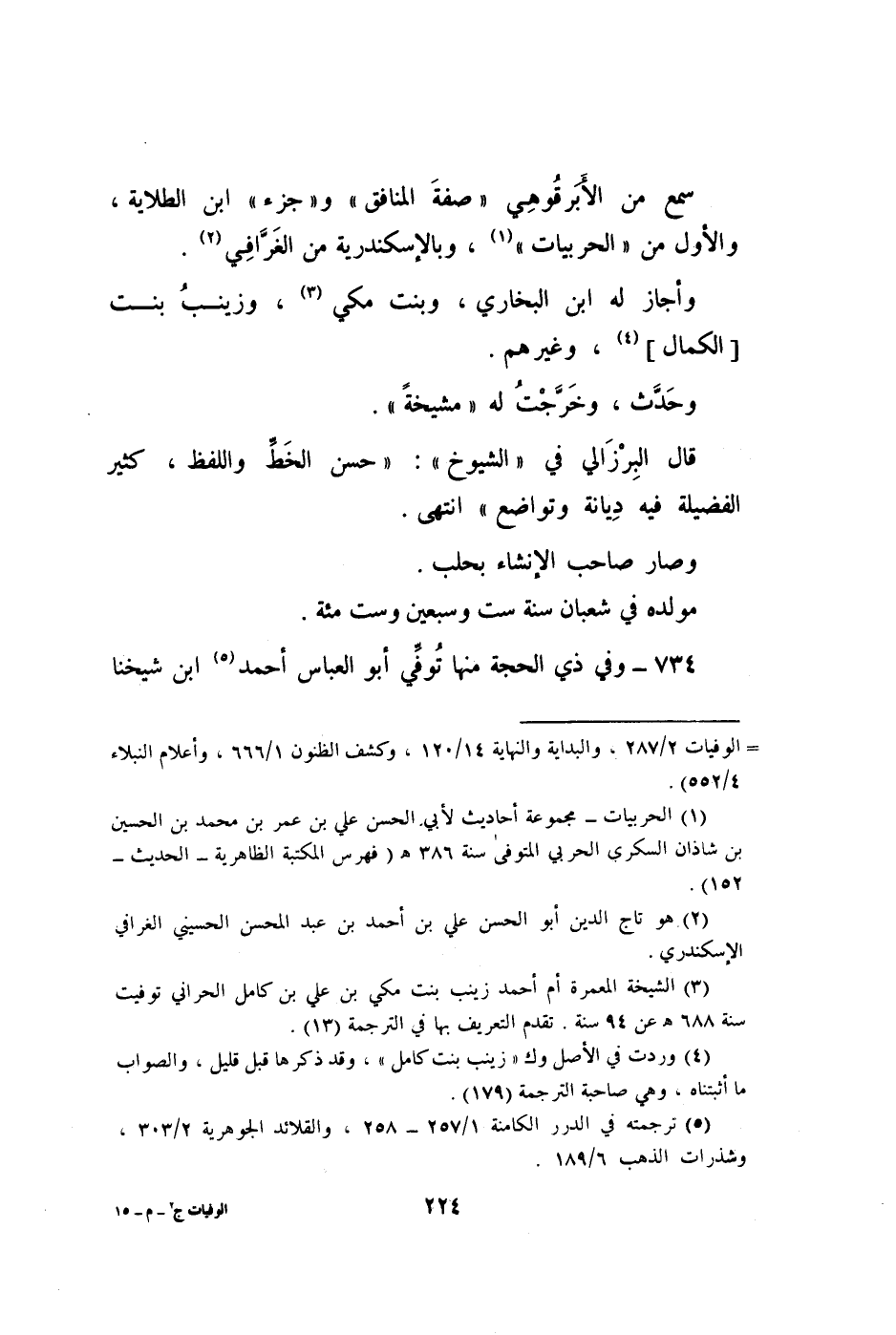 734 - وَفِي ذِي الْحجَّة مِنْهَا توفّي أَبُو الْعَبَّاس أَحْمد ابْن شَيخنَا
